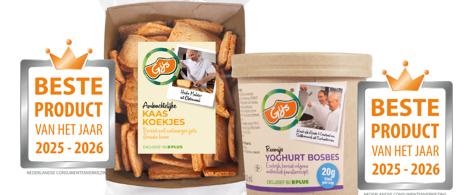 GIJS valt meerdere malen in de prijzen: GIJS Eiwitrijk roomijs & GIJS Kaaskoekjes